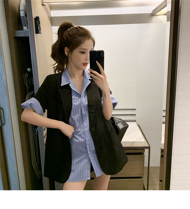 | 商品名 | エベレストシャツ気質女神ヴァンチェスト夏2020新商品黒のスーツに薄いジャケットにストライプ半袖シャツを二点セットの青いシャツS |