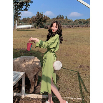 エパール・ウシ油果緑ワンピス女性2020年春新作商品シフォン仙女超仙女系赤いシャツ流行スカートサンゴ橘L【写真価格ブランド見積】-京東