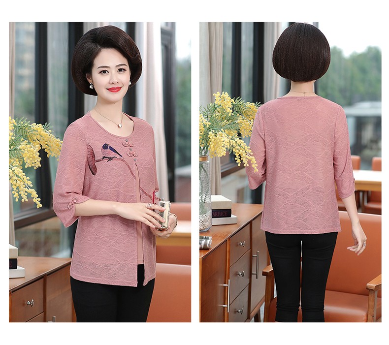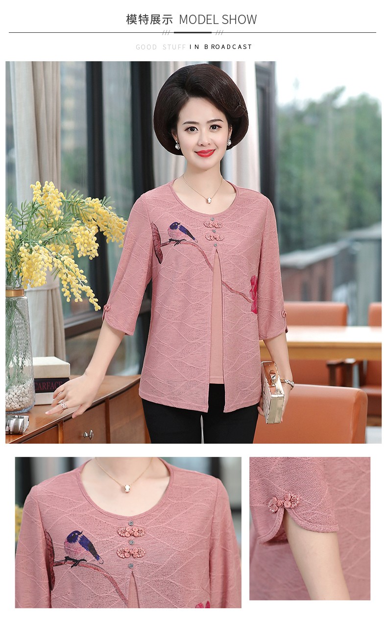 秋芙罗中老年女装2021夏服半袖小さいシャツ中年のお母さんの上着の大きいサイズの太い奥さんのゆったりとしたカジュアルな二点セットQ 36209208ピンクのセクト2 XL【おすすめ115-130斤】