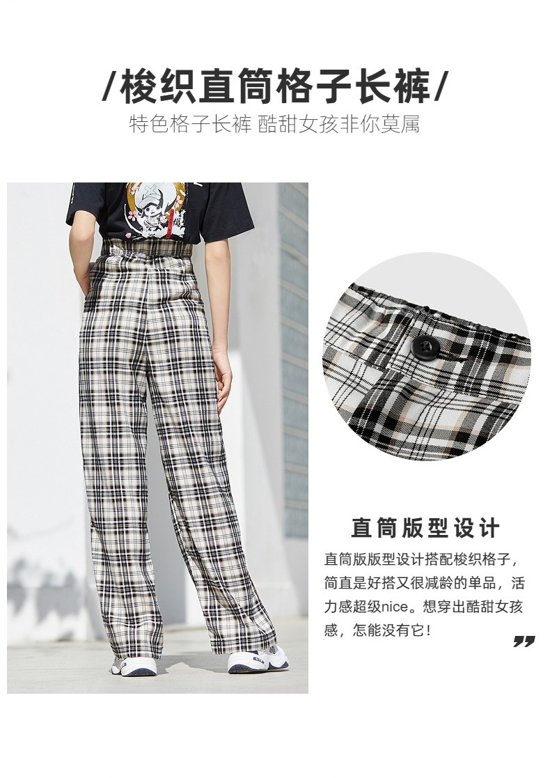 | 商品名称 | バンニーロード2021夏新商品の婦人服の布地の格子のゆったりしたカジュアルズボン運動夏服の女性ファッションの直筒の外は明らかにやせていて空気を通すズボンの010 C Sを着ます。 |