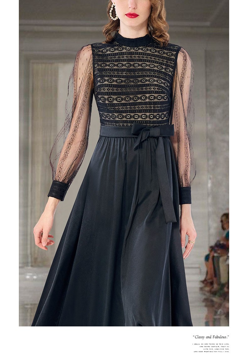 | 商品名称 | fleurwoodレースステッチワンピス女2021秋新商品黒い網の長袖を収めて腰が細く見える大きなサテンの黒いL。 |