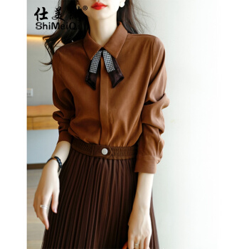 仕美绮 秋冬ワンピース女21年早秋装新着商品女装高级感休闲セット小香风上品气质女神范裙子潮 棕色衬衫+棕色半身裙 M【图片 价格 品牌 报价】-
