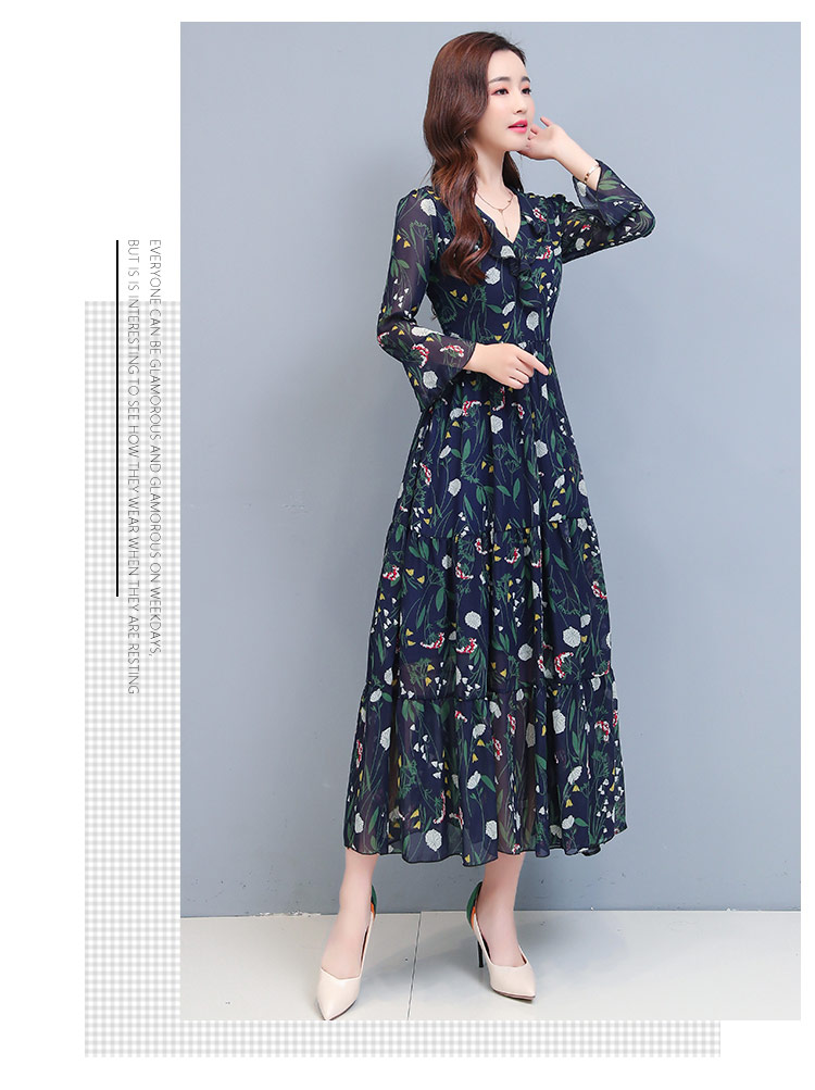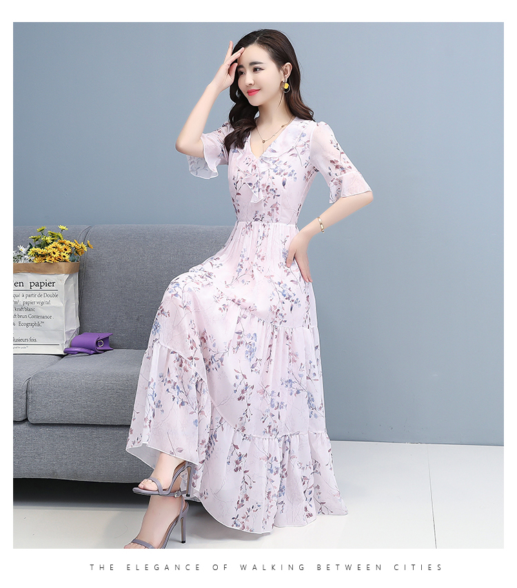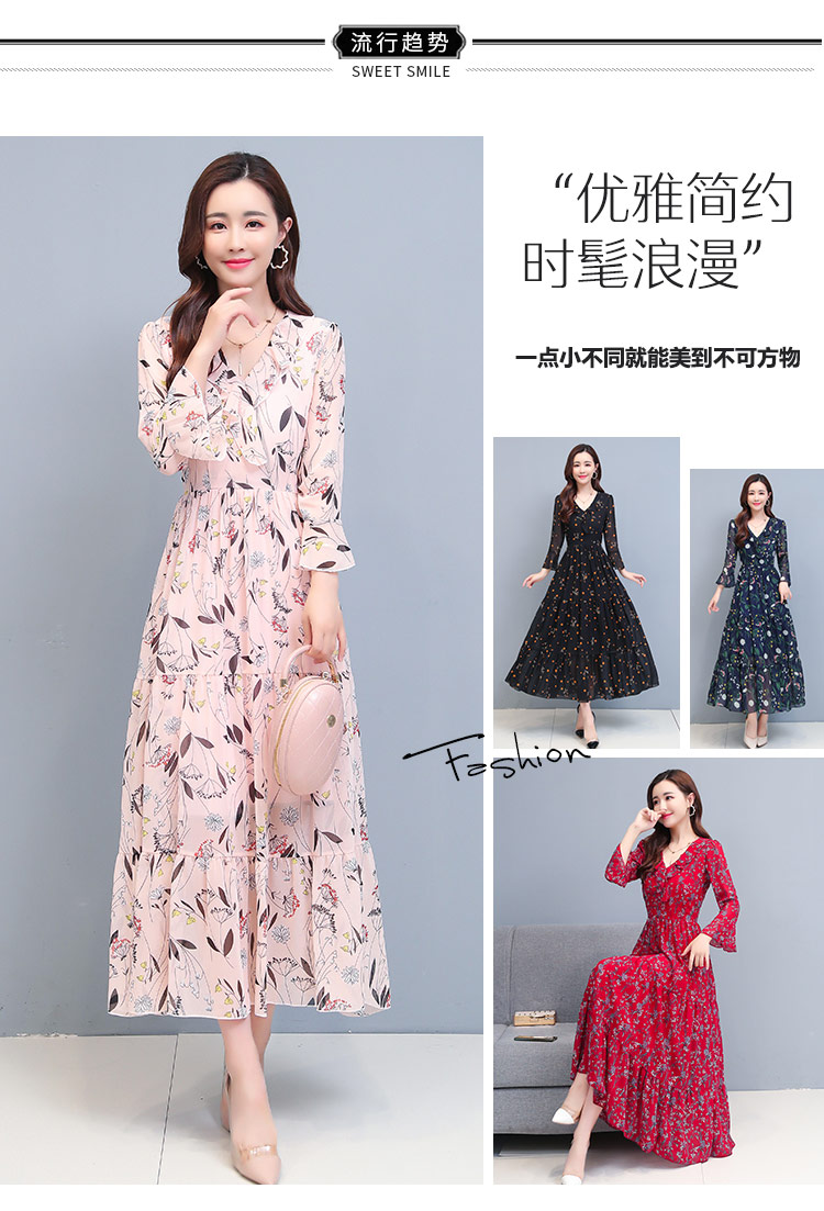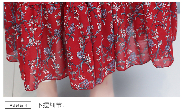 エパールの花のシフォンワンピス女性の夏2020女装新商品韓国版の中の長項は腰が見える細いラッパの袖の小さい清新なスカートを収めて青いLを隠します。