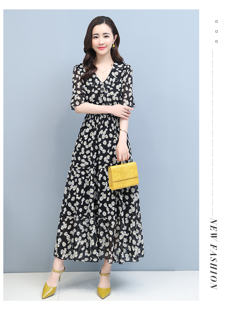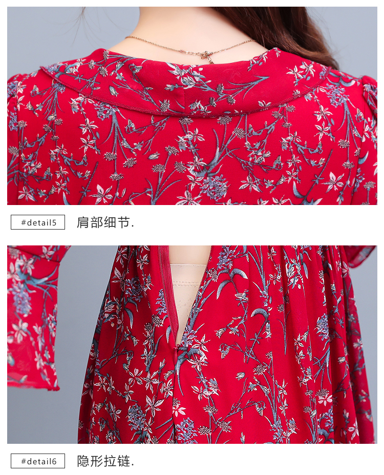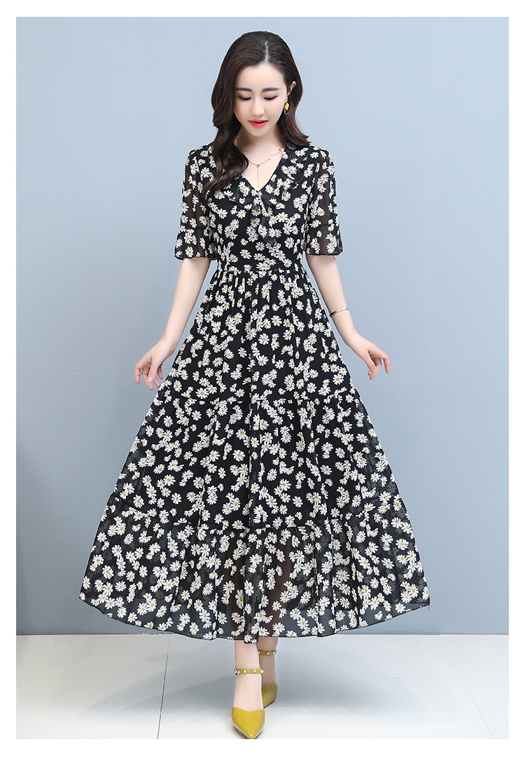 顾森 半袖雪纺ワンピース女夏款ワンピース减龄显瘦气质收腰贵夫人洋气过膝ロングスカート子 蓝色(半袖) M