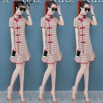 | 商品名称 | エパール洋気チェックワンピスの若いモデル2020夏新着商品ファッション中国風レトロ調改良版チャイナドレススカートグリーン2 XL |