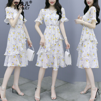 エパール砕花シフォンワンピス女性2020新商品夏收腰顕痩せ気質小清新仙女ケーキスカート杏色L【写真価格ブランド見積】-京東